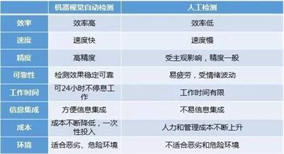機(jī)器視覺優(yōu)勢:機(jī)器視覺系統(tǒng)具有高效率、高度自動化的特點(diǎn),可以實(shí)現(xiàn)很高的分辨率精度與速度。機(jī)器視覺系統(tǒng)與被檢測對象無接觸,安全可靠。人工檢測與機(jī)器視覺自動檢測的主要區(qū)別有: